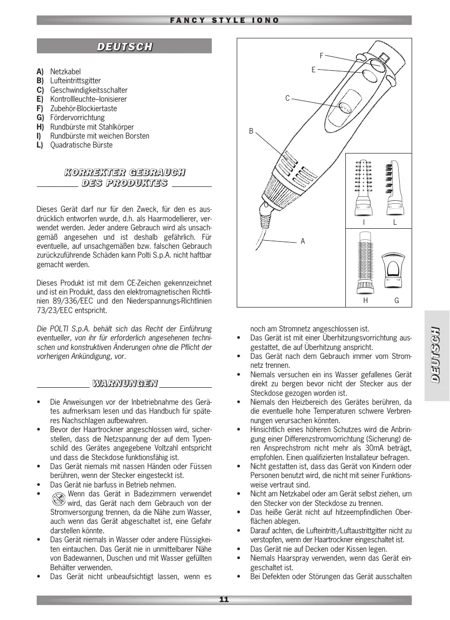 BEDIENUNGSANLEITUNG FANCY STYLE IONO POLTI