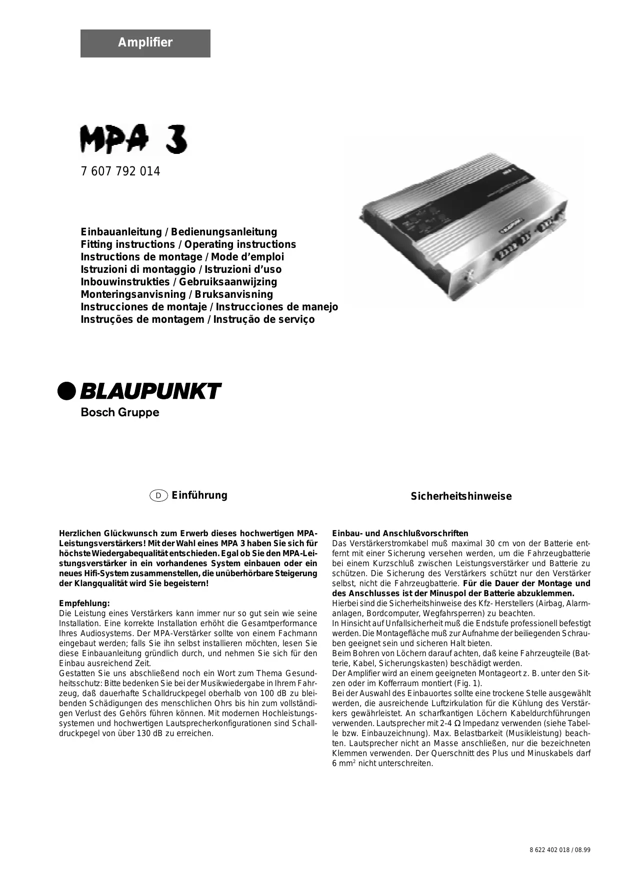 MPA 3 - Leistungsverstärker BLAUPUNKT - Kostenlose Bedienungsanleitung