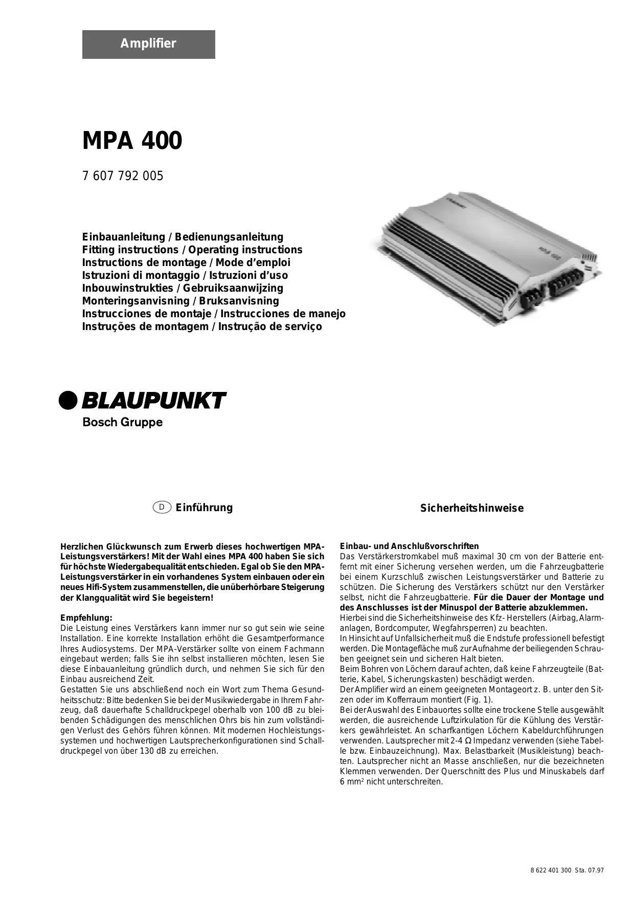 MPA 400 - Leistungsverstärker BLAUPUNKT - Kostenlose Bedienungsanleitung