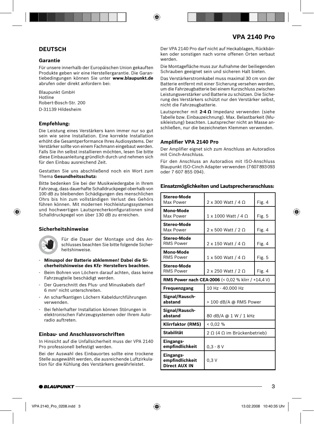 VELOCITY VPA 2140 PRO - Audioverstärker BLAUPUNKT - Kostenlose Bedienungsanleitung