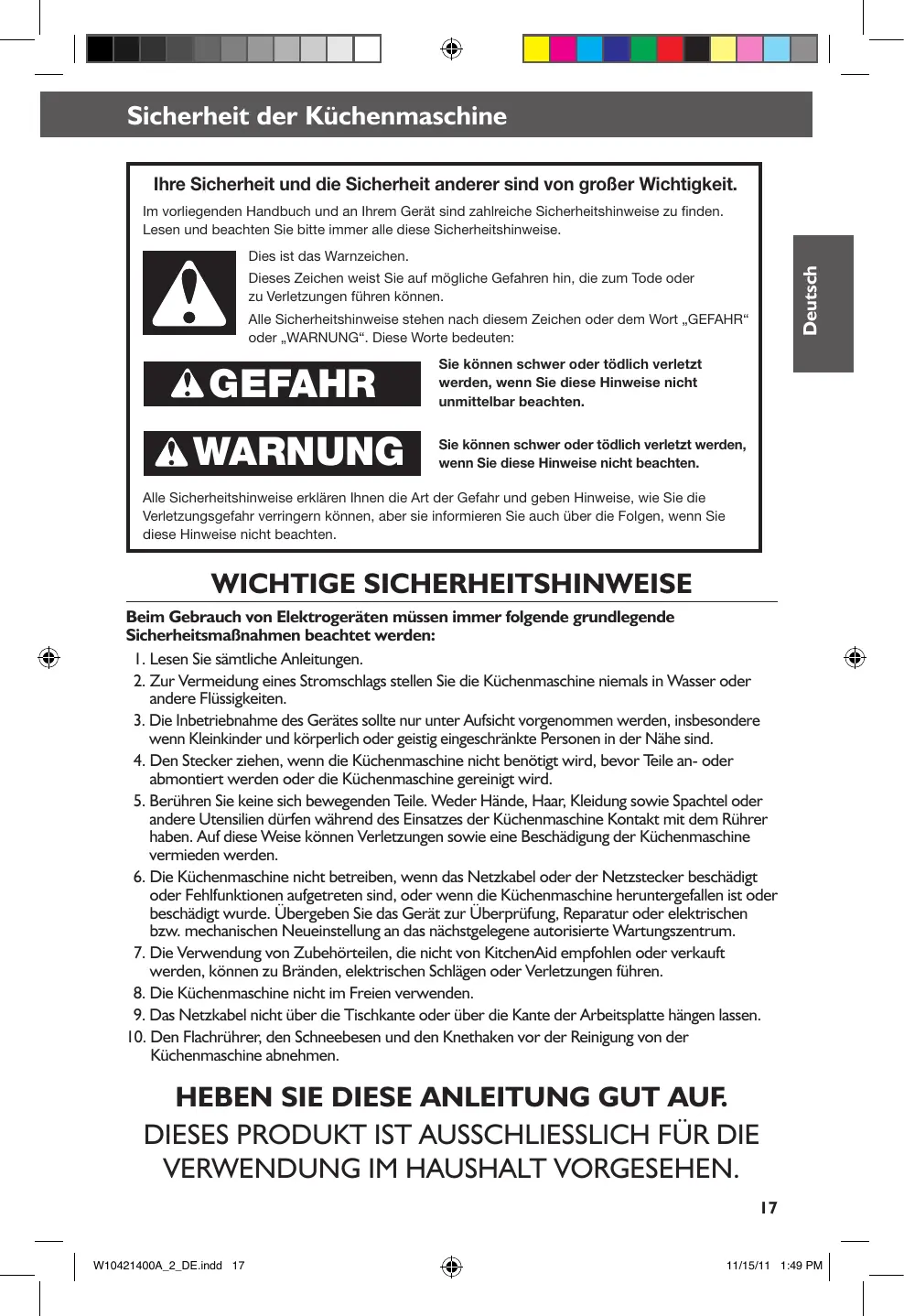 BEDIENUNGSANLEITUNG 5KSM7580XEMS ARTISAN KITCHENAID