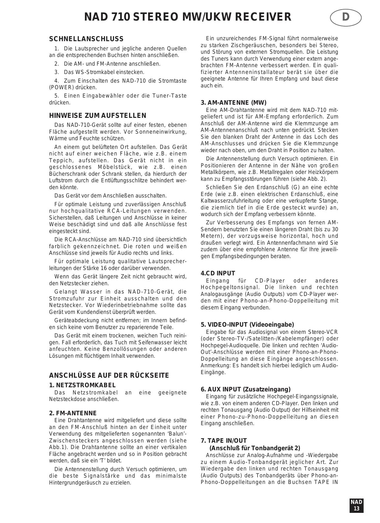 Finden Sie kostenlos die Bedienungsanleitung des Geräts 710 NAD als PDF.