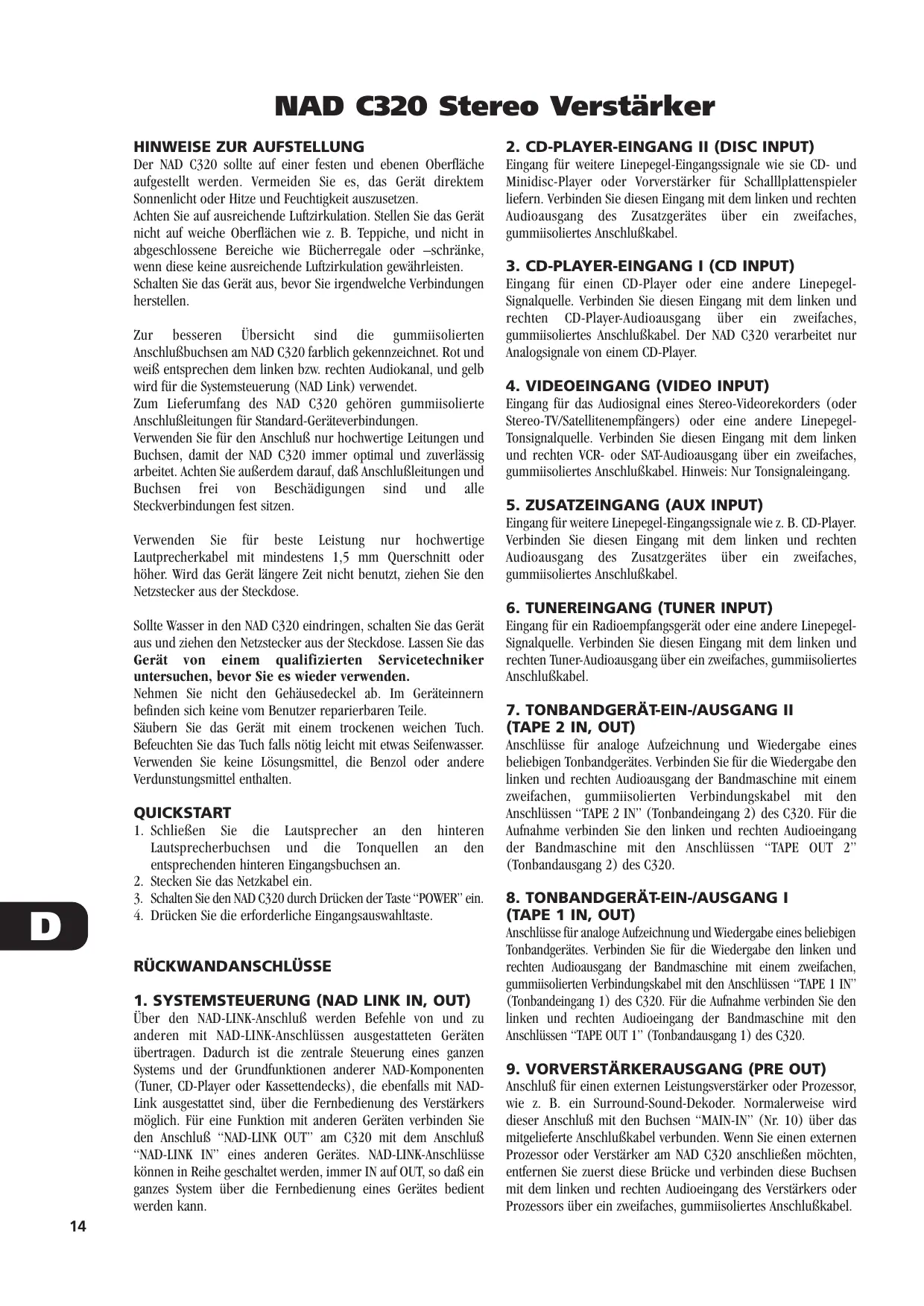 Finden Sie kostenlos die Bedienungsanleitung des Geräts C320 NAD als PDF.