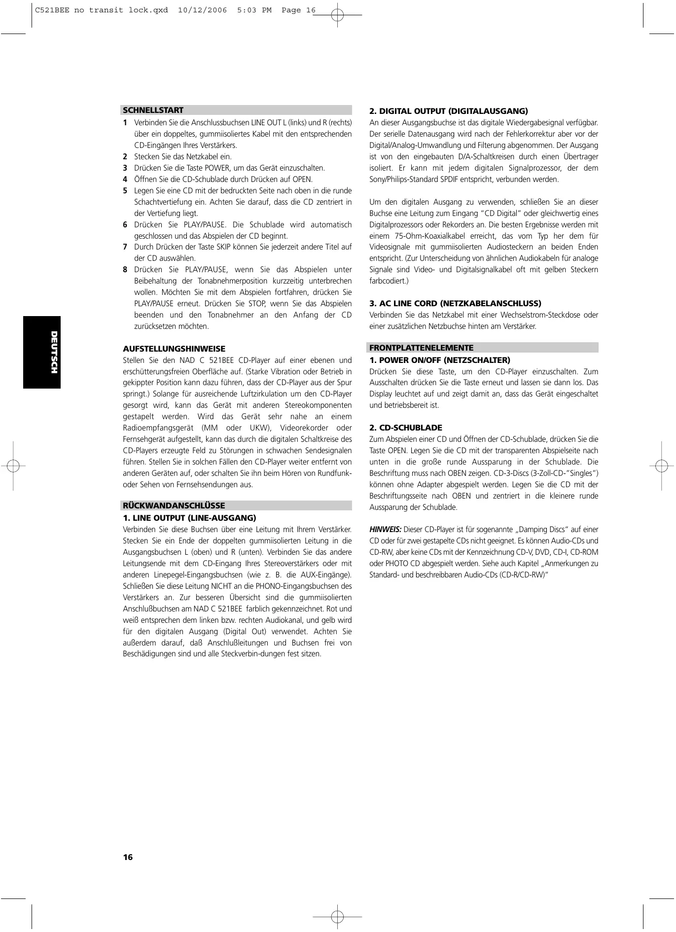 BEDIENUNGSANLEITUNG C521BEE NAD
