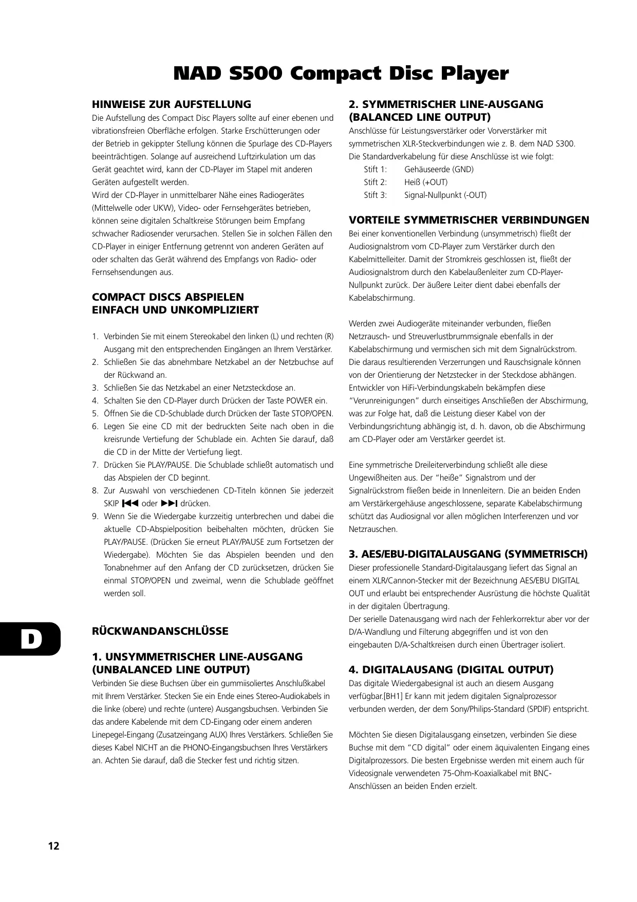 S500 - CD-Spieler NAD - Kostenlose Bedienungsanleitung