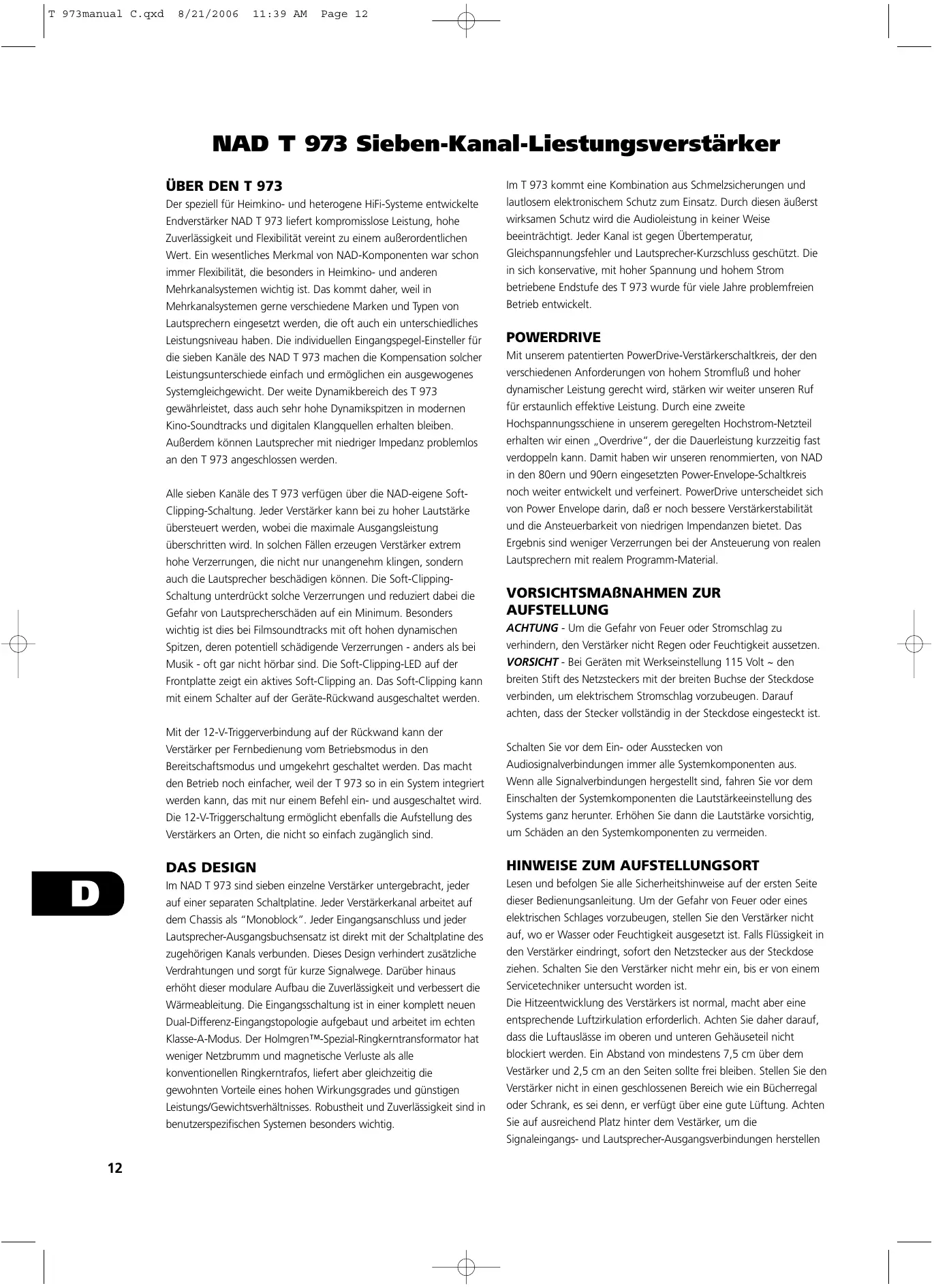Finden Sie kostenlos die Bedienungsanleitung des Geräts T973 NAD als PDF.