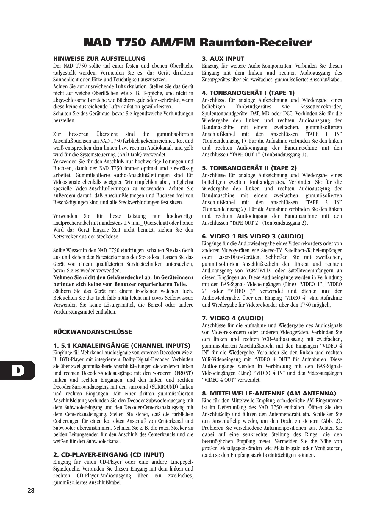 Finden Sie kostenlos die Bedienungsanleitung des Geräts T750 NAD als PDF.