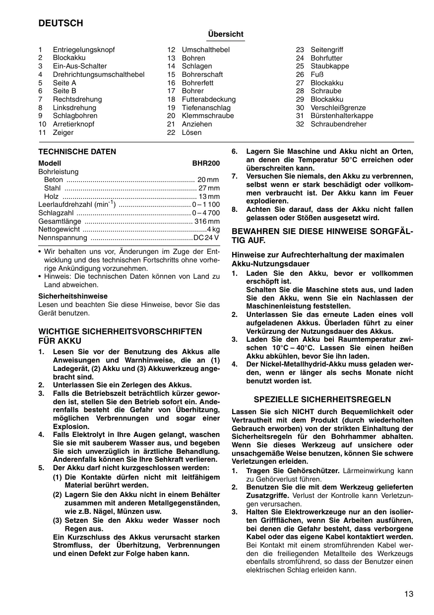 BEDIENUNGSANLEITUNG BHR200WAE MAKITA