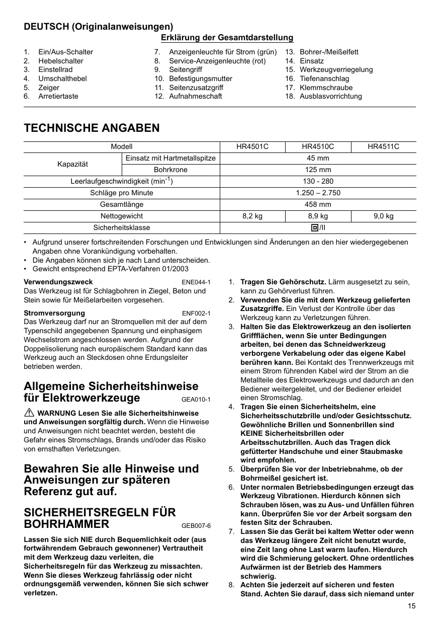 BEDIENUNGSANLEITUNG HR 4501 C MAKITA