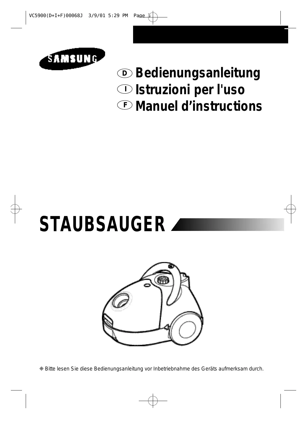 Laden Sie die Anleitung für Ihr Staubsauger kostenlos im PDF-Format! Finden Sie Ihr Handbuch VC-5914V - SAMSUNG und nehmen Sie Ihr elektronisches Gerät wieder in die Hand. Auf dieser Seite sind alle Dokumente veröffentlicht, die für die Verwendung Ihres Geräts notwendig sind. VC-5914V von der Marke SAMSUNG.