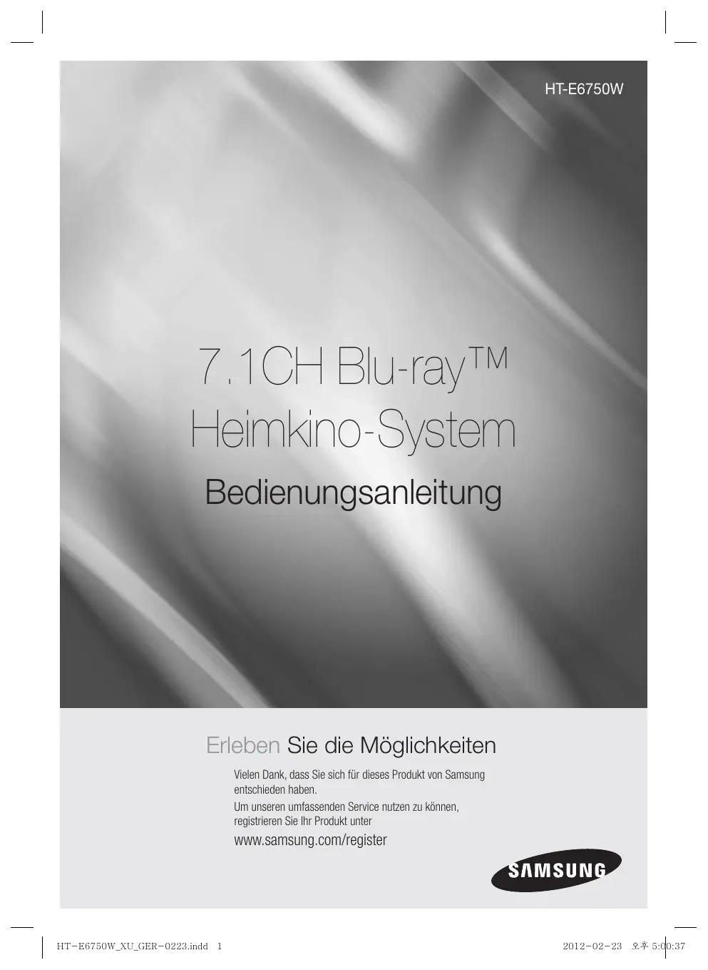 Zusätzliche Informationen Fehlerbehebung Technische Daten ANHANG | 6 Deutsch HT-E6750W_XU_GER-0223.indd 6 2012-02-23 오후 5:01:30 Erste Schritte Disk und Format Kompatibilität