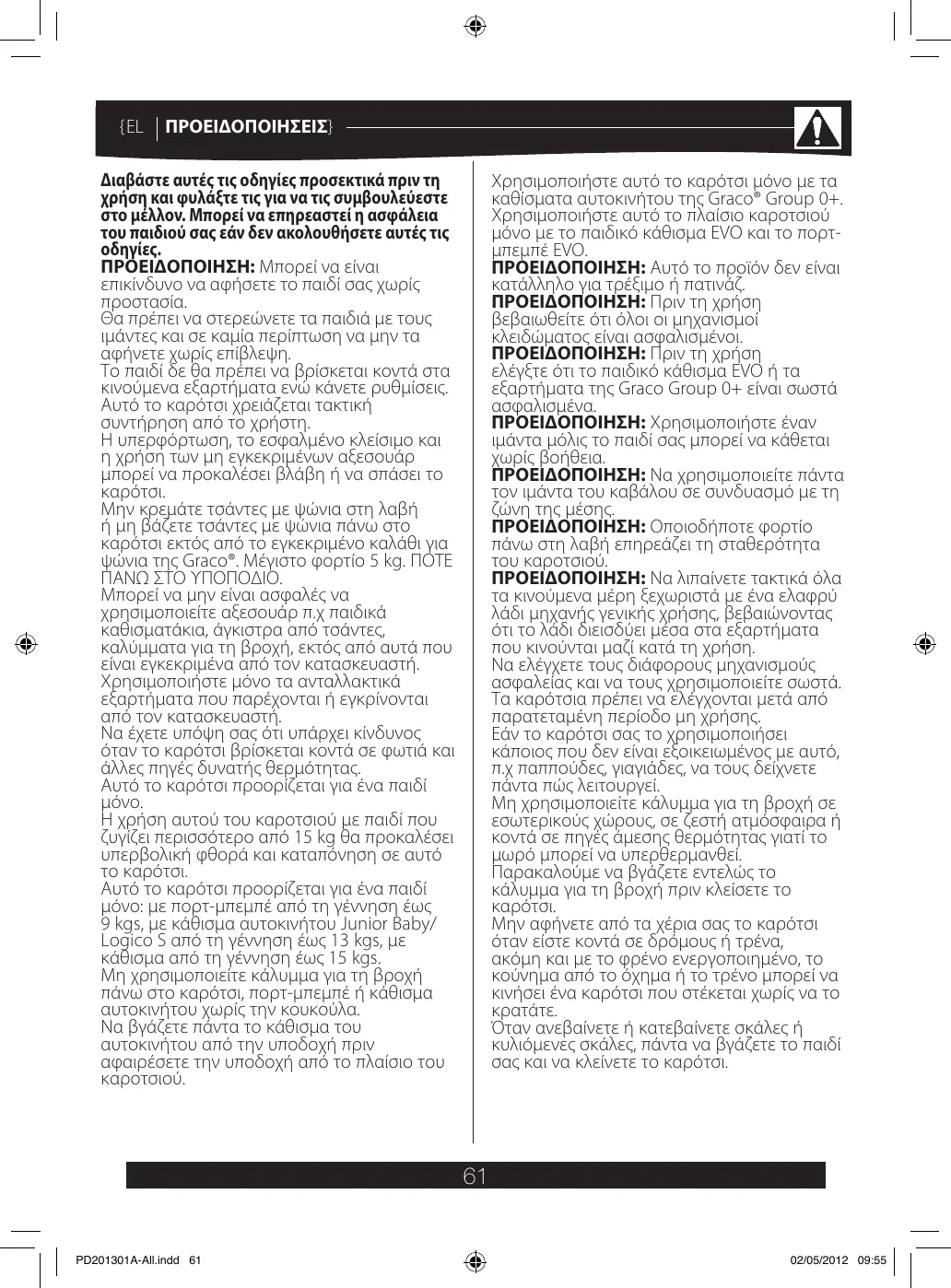 EVO TS - Παιδικά καρότσια GRACO - Notice d'utilisation et mode d'emploi gratuit
