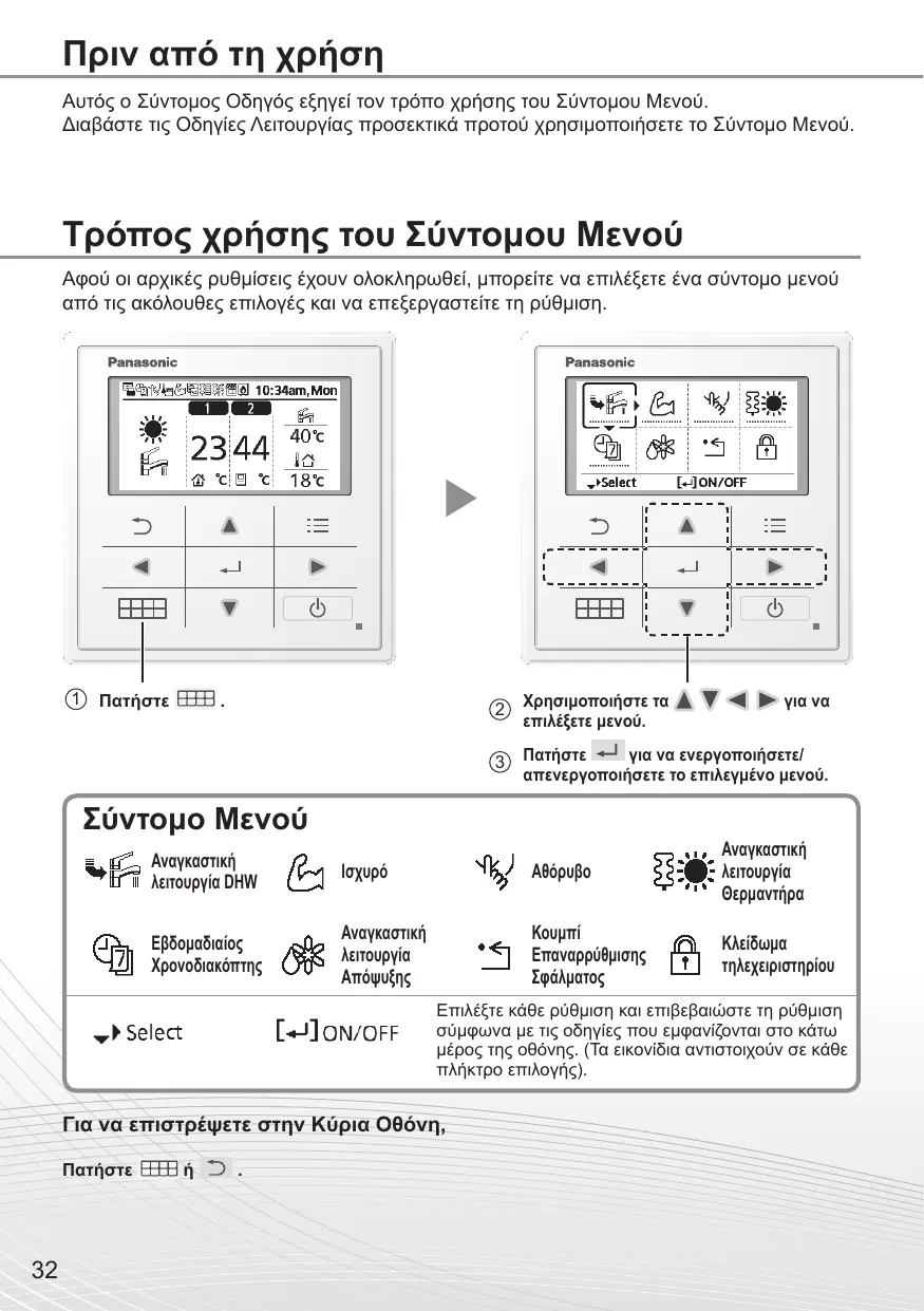 Πριν από τη χρήση Αυτός ο Σύντομος Οδηγός εξηγεί τον τρόπο χρήσης του Σύντομου Μενού. Διαβάστε τις Οδηγίες Λειτουργίας προσεκτικά προτού χρησιμοποιήσετε το Σύντομο Μενού.
