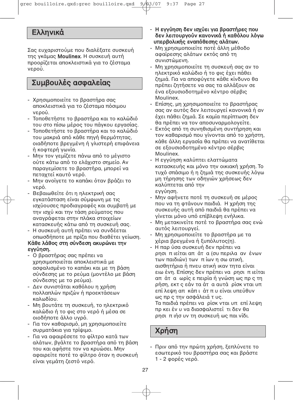 Nous vous remercions d’avoir choisi un appareil de la gamme Moulinex qui est exclusivement prévu pour chauffer de l’eau.