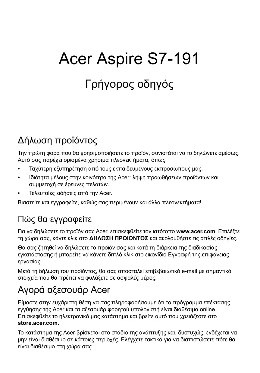 Téléchargez la notice de votre Φορητός υπολογιστής au format PDF gratuitement ! Retrouvez votre notice ASPIRE S7-191 - ACER et reprennez votre appareil électronique en main. Sur cette page sont publiés tous les documents nécessaires à l'utilisation de votre appareil ASPIRE S7-191 de la marque ACER.