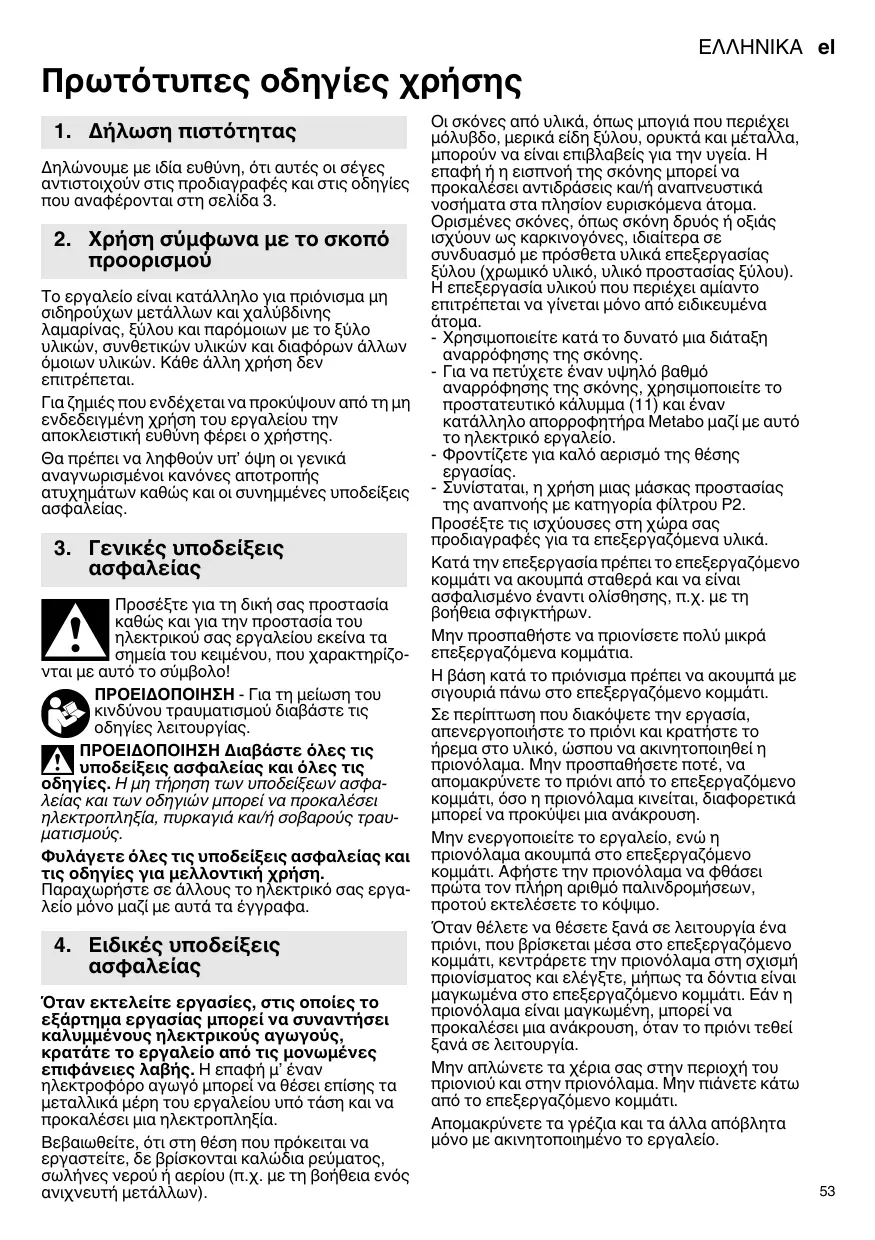Me nλεκτρικα εργαλείa Metabo που ἐχούν ανάγκη έπιακεύν, anteυθυθεῖτη παρακαιώ στην αντιστοιχιν αντιπροωπία της Metabo. Διεύθυνεις βλέτεν www.metabo.org.