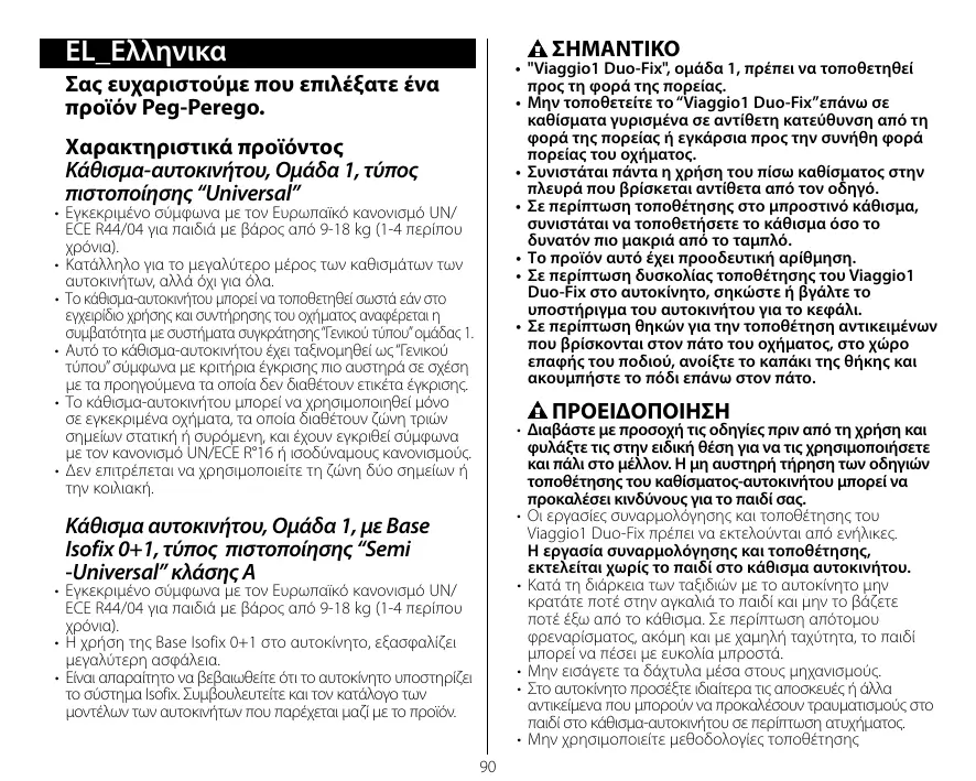 Téléchargez la notice de votre κάθισμα αυτοκινήτου au format PDF gratuitement ! Retrouvez votre notice VIAGGIO1 DUO-FIX - PEG PEREGO et reprennez votre appareil électronique en main. Sur cette page sont publiés tous les documents nécessaires à l'utilisation de votre appareil VIAGGIO1 DUO-FIX de la marque PEG PEREGO.