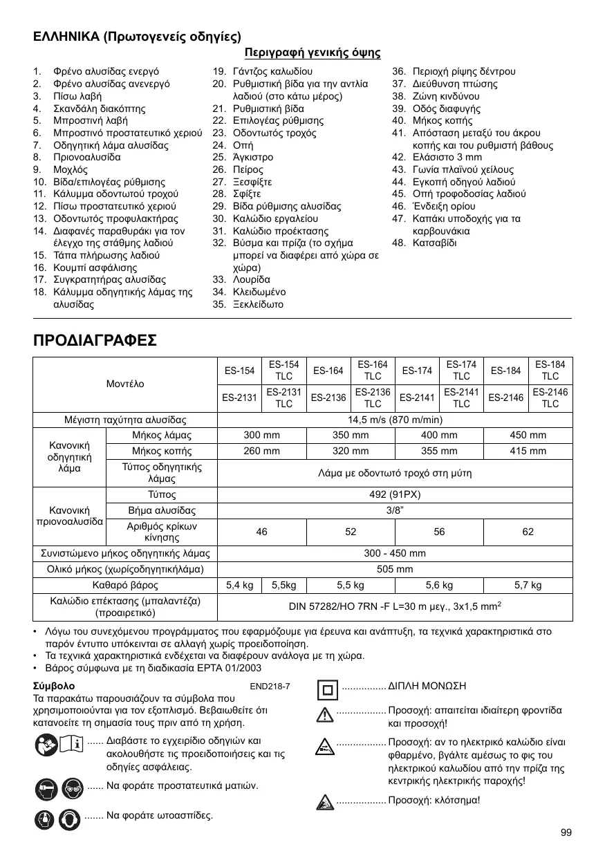 1. Antes de empezar a trabajar, compruebe siempre que las características de seguridad están en perfecto estado de funcionamiento. No utilice la sierra si las características de seguridad no funcionan correctamente. – Freno de la cadena: La sierra incluye un freno de la cadena que detiene la cadena de la sierra en una fracción de segundo. Se 69
