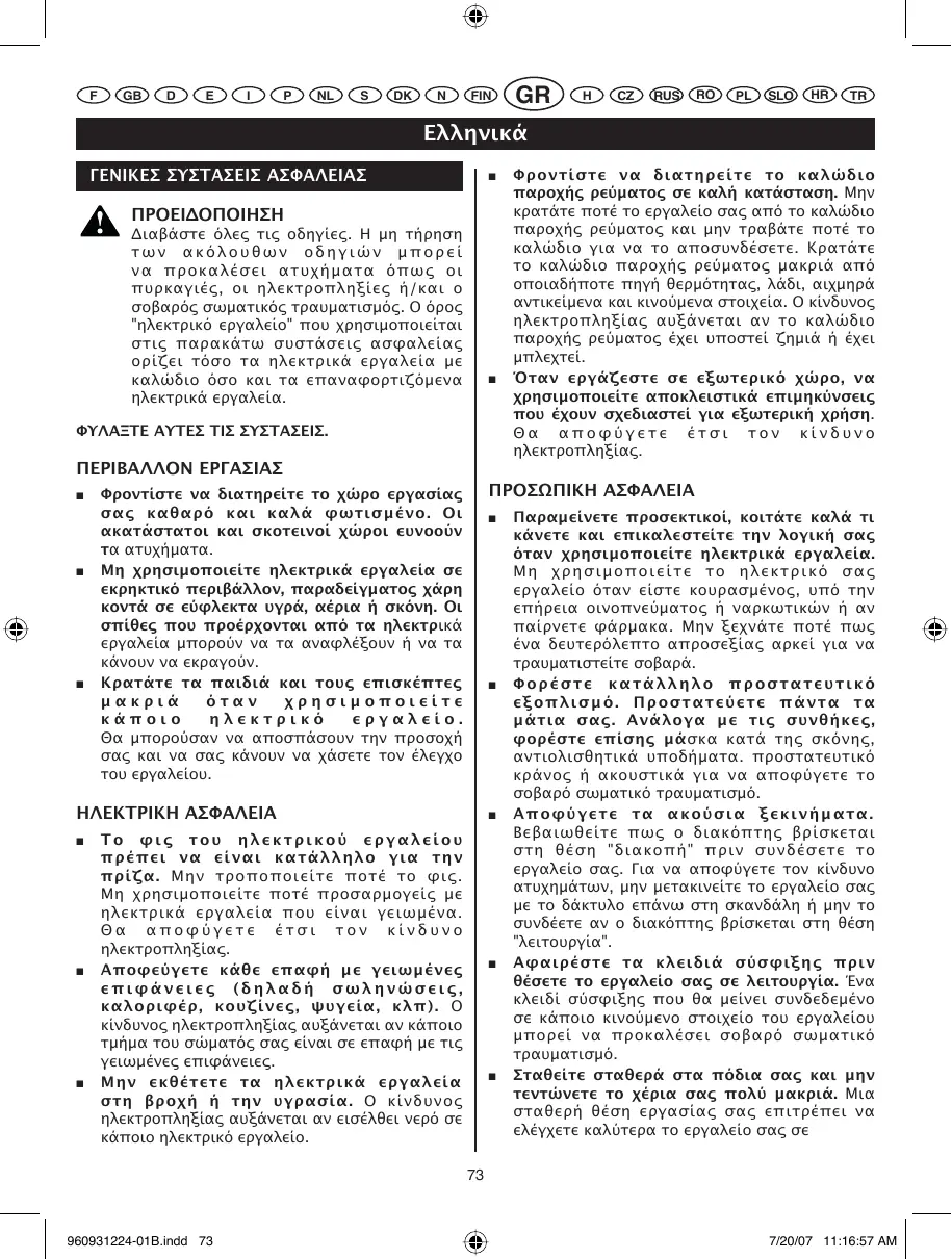 Tnpnte Tc npouoeoc ouotaeic aopaaeiac otav xpnoiopoite To epyaleio, ta Eapntmuata, Tc uetc, kAn vovtauOnytnicldiaTePOTNTc TnsOoKeunc OAC, Tou Xwpou epyaiaoc oac KAt TnC epyaoiaoc Tou 0a TpayatooiOte. Poc atooyuy n etikivduuvw kataaroeew, xpoiuotoleite To nKektpko epyaleio oac mvo yia Tc epyaiecs yia Tc otoiec exi oxedlaotei.
