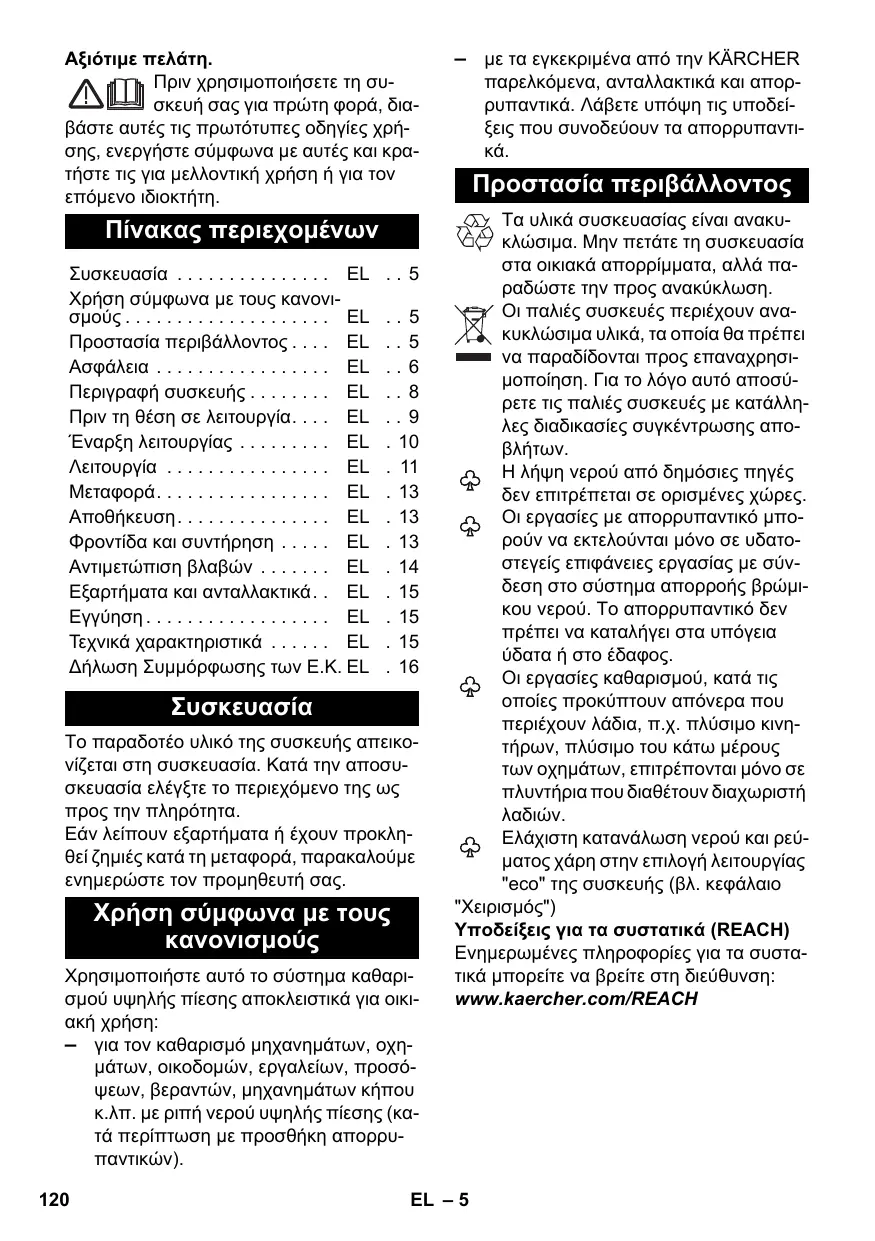 www.kaercher.com/REACH Utilizaţi acest aparat de curăţat sub presiune exclusiv pentru gospodăria particulară.