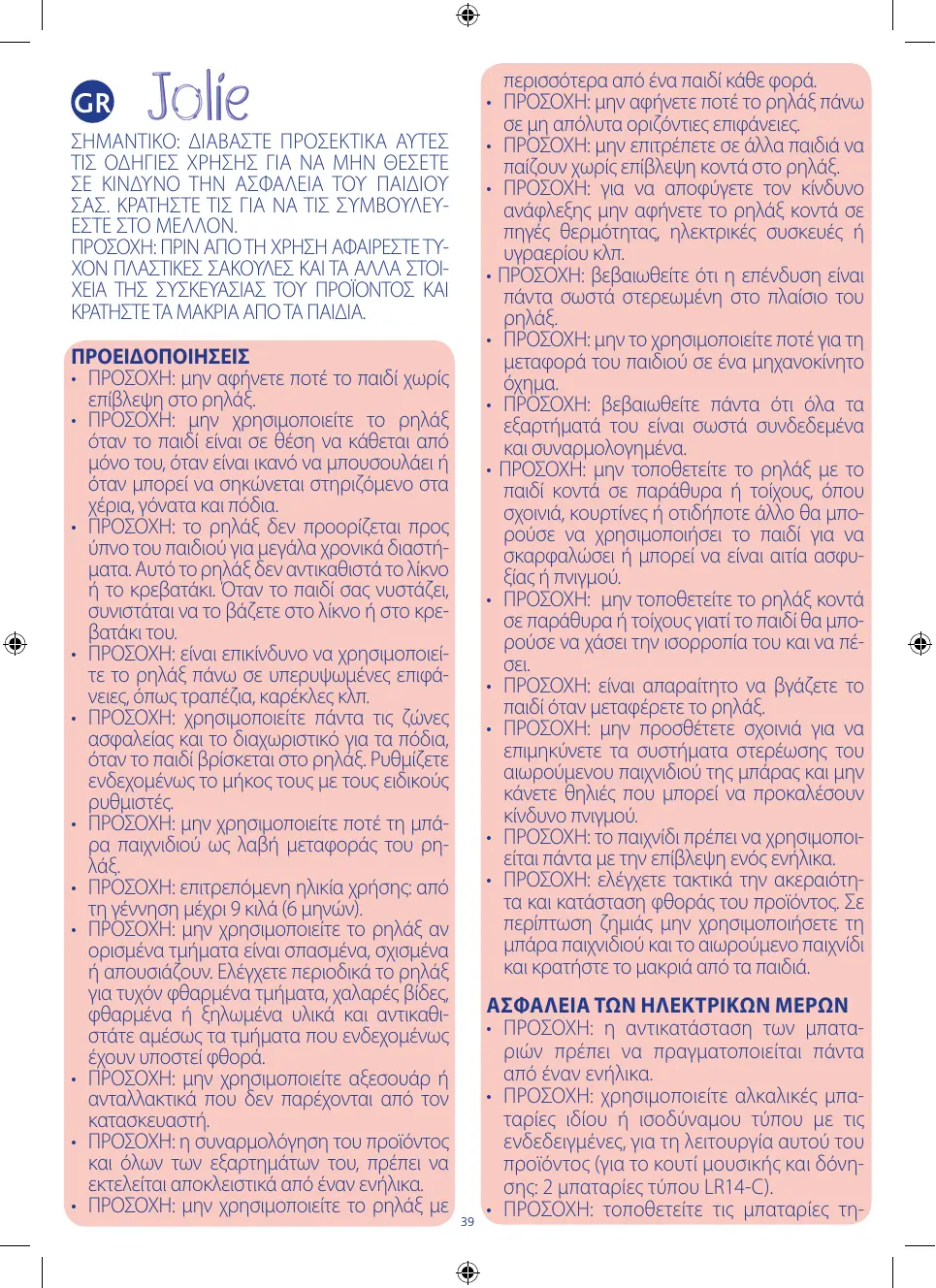 VOTRE ENFANT RISQUE DE SE BLESSER SI VOUS NE SUIVEZ PAS CES INSTRUCTIONS. VOR DEM GEBRAUCH SORGFÄLTIG DIE ANWEISUNGENLESENUNDFÜRZUKÜNFTIGES NACHSCHLAGEN AUFBEWAHREN. IHR KIND KÖNNTE SICH WEHTUN, WENN DIESE ANWEISUNGEN NICHT BEFOLGT WERDEN. READ THE INSTRUCTIONS CAREFULLY BEFORE USE AND KEEP THEM FOR FUTURE REFERENCE. YOUR CHILD MAY BE HURT IF YOU DO NOT FOLLOW THE INSTRUCTIONS. ANTES DEL USO LEER ATENTAMENTE LAS INSTRUCCIONES Y CONSERVARLAS PARA FUTURASCONSULTAS.SUHIJOPODRÍAHACERSE DAÑO SI NO SE SIGUEN ESTAS INSTRUCCIONES. Est Aff mo clin Ag l’ap (fig Rip che gu n°4 cor Ca la cin E’ lav Per tag
