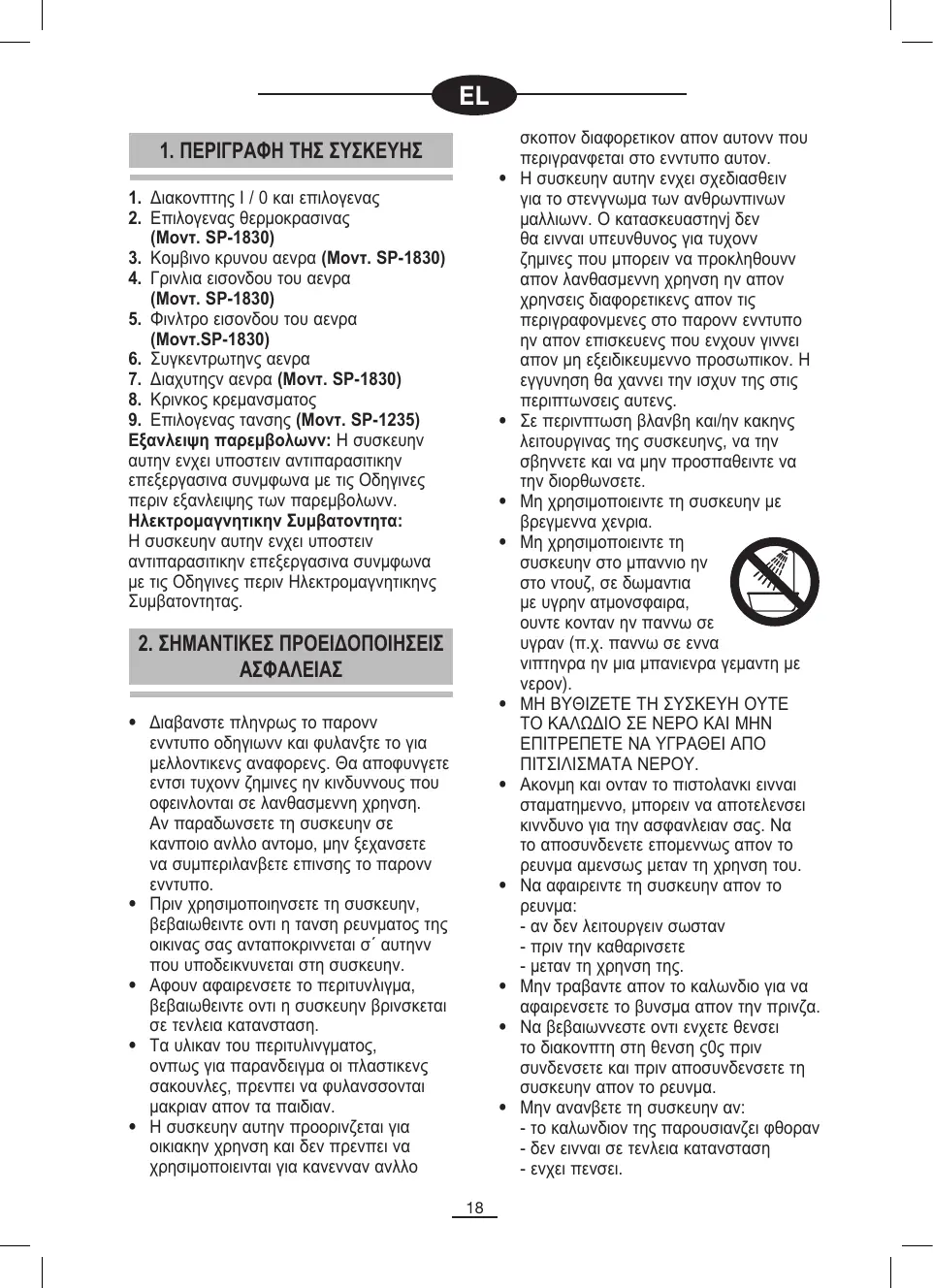 ΕΓΧΕΙΡΊΔΙΟ ΧΡΉΣΗΣ SP-1830 FAGOR
