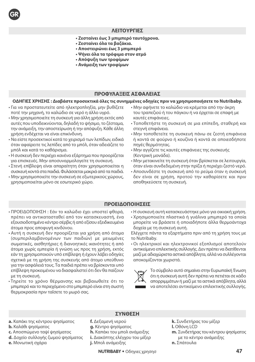 Téléchargez la notice de votre Ρομπότ κουζίνας για μωρά au format PDF gratuitement ! Retrouvez votre notice ROBOT NUTRIBABY - BABYMOOV et reprennez votre appareil électronique en main. Sur cette page sont publiés tous les documents nécessaires à l'utilisation de votre appareil ROBOT NUTRIBABY de la marque BABYMOOV.