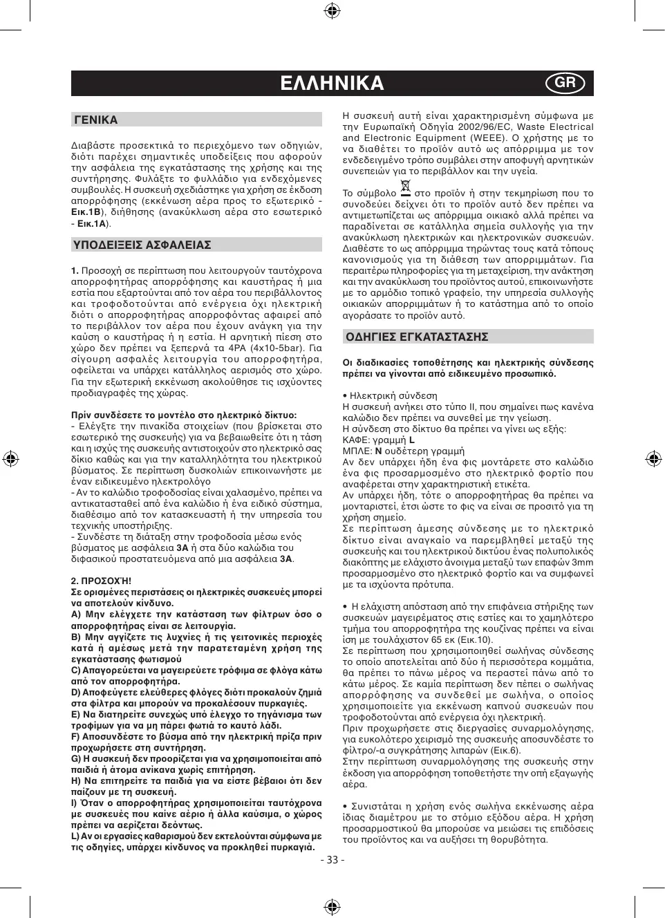 1. Attention, lorsque dans la même pièce vous utilisez simultanément la hotte à évacuation avec un brûleur ou une cheminée alimentés par une énergie autre que l’électricité, vous pouvez créer un problème “d’inversion de flux”. Dans ce cas la hotte aspire l’air nécessaire à leur combustion. La dépression dans le local ne doit pas dépasser les 4 Pa (4x10-5 bar). Pour un fonctionnement en toute sécurité, n’oubliez pas de prévoir une ventilation suffisante du local. Pour l’évacuation vers l’extérieur, veuillez vous référer aux dispositions en vigueur dans votre pays.