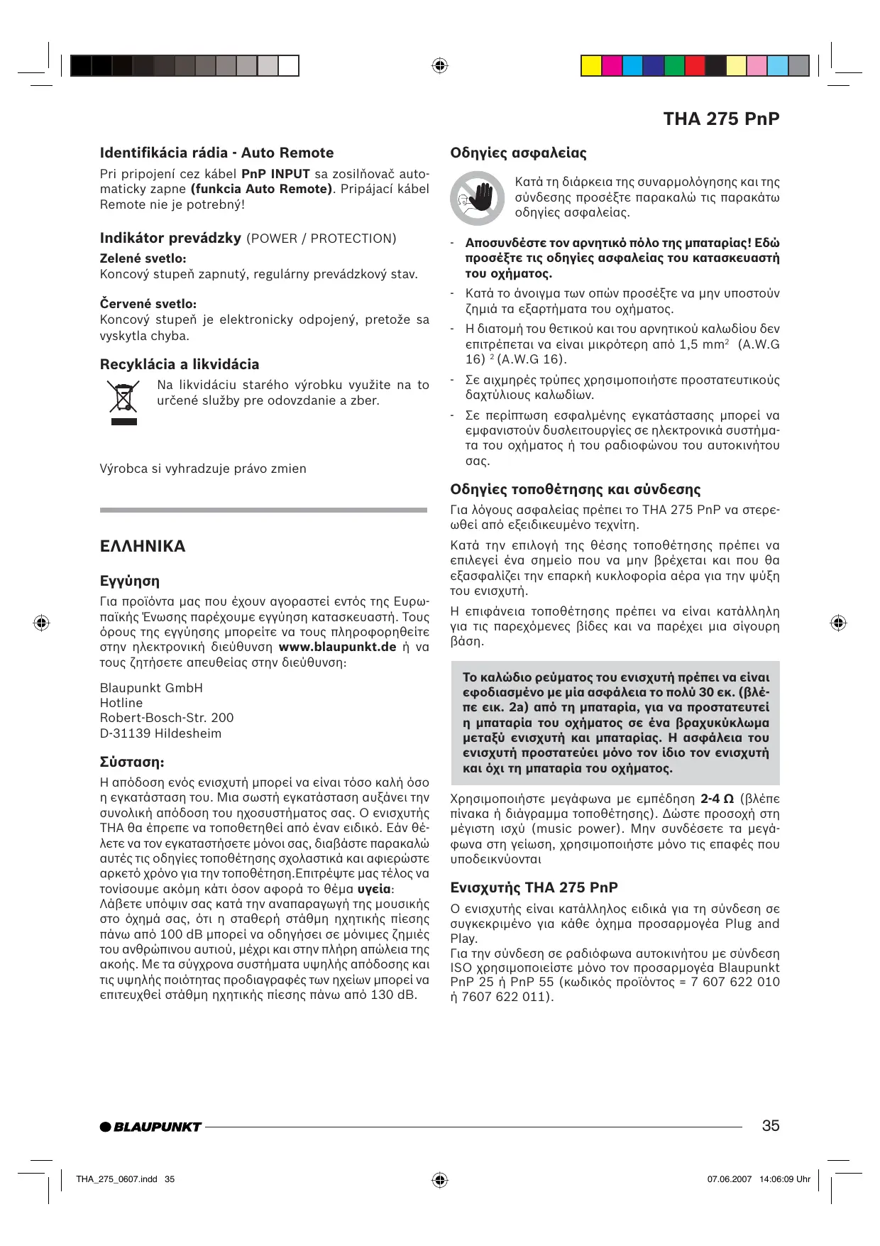 THA 275 PNP - Ενισχυτής αυτοκινήτου BLAUPUNKT - Notice d'utilisation et mode d'emploi gratuit