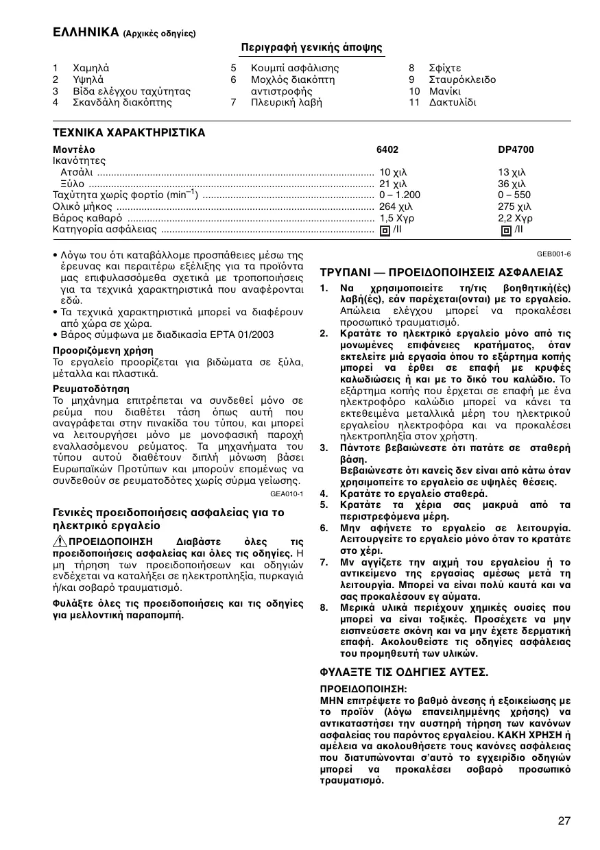 Κατεβάστε τις οδηγίες για το κολωνοτρύπανο σε μορφή PDF δωρεάν! Βρείτε το εγχειρίδιό σας DP4700 - MAKITA και πάρτε ξανά την ηλεκτρονική σας συσκευή στα χέρια σας. Σε αυτή τη σελίδα δημοσιεύονται όλα τα έγγραφα που απαιτούνται για τη χρήση της συσκευής σας. DP4700 της μάρκας MAKITA.