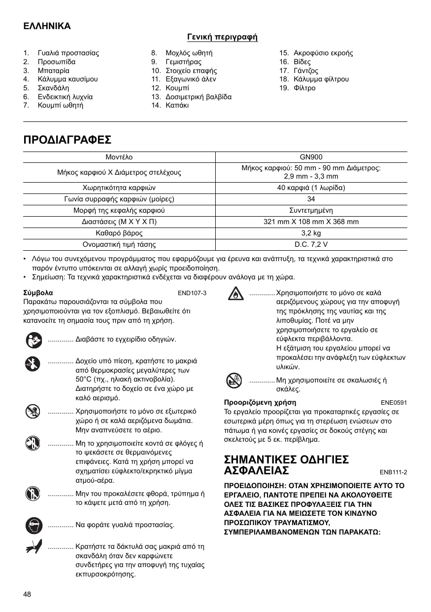 Κατεβάστε τις οδηγίες για το Ασύρματο καρφωτικό σε μορφή PDF δωρεάν! Βρείτε το εγχειρίδιό σας GN900 - MAKITA και πάρτε ξανά την ηλεκτρονική σας συσκευή στα χέρια σας. Σε αυτή τη σελίδα δημοσιεύονται όλα τα έγγραφα που απαιτούνται για τη χρήση της συσκευής σας. GN900 της μάρκας MAKITA.
