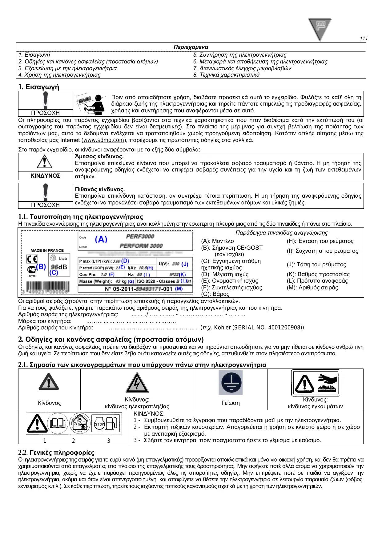 Téléchargez la notice de votre Γεννήτρια au format PDF gratuitement ! Retrouvez votre notice VARIO 1000I, VARIO 2000I, VARIO 3000I - SDMO et reprennez votre appareil électronique en main. Sur cette page sont publiés tous les documents nécessaires à l'utilisation de votre appareil VARIO 1000I, VARIO 2000I, VARIO 3000I de la marque SDMO.