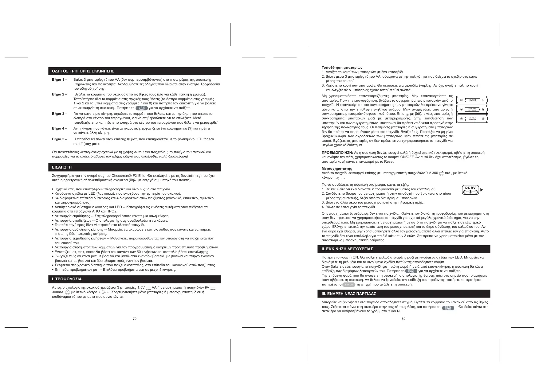 I. ALIMENTATION Ce jeu d’échecs fonctionne avec 3 piles alcalines LR6 de 1.5V