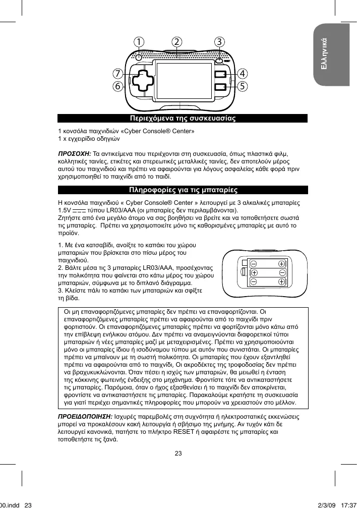 - Πληκτρο ON/OFF: Ππατοτe auto το πλήκτρο γγαν ενεργοτοῦσετε Kαιναν atteνεργοτοῦσετε το παιχίδι. H μοναδα atteνεργοτοῦσειαι autόμανα τι παραεῖνει ανεργει ἀπι 3 λέτιὰ.