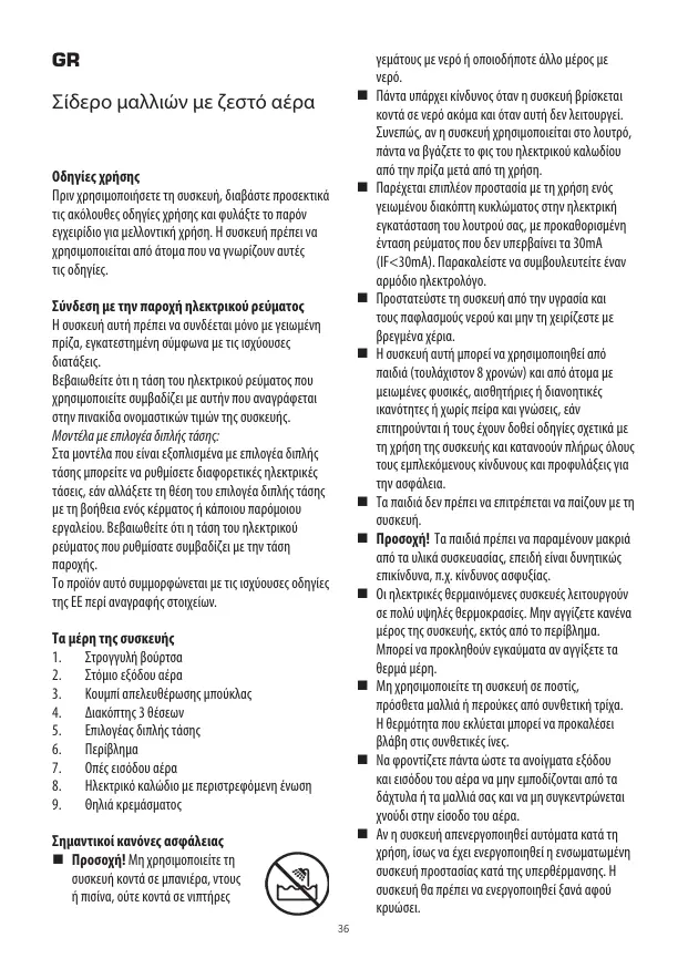 Σδερο μαλλιων με ζεστό αερα