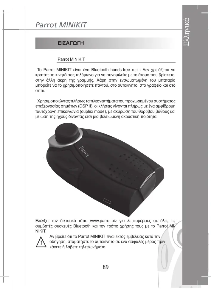 MINIKIT - Σετ hands-free PARROT - Notice d'utilisation et mode d'emploi gratuit