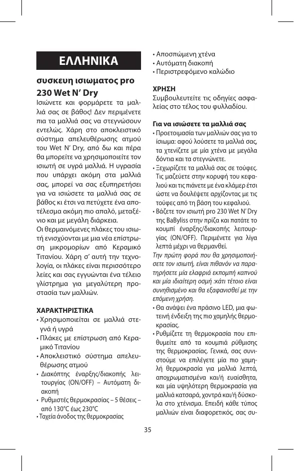 NDry de BaByliss et appuyez sur le bouton ON/OFF. Patientez quelques minutes que le lisseur soit à température.