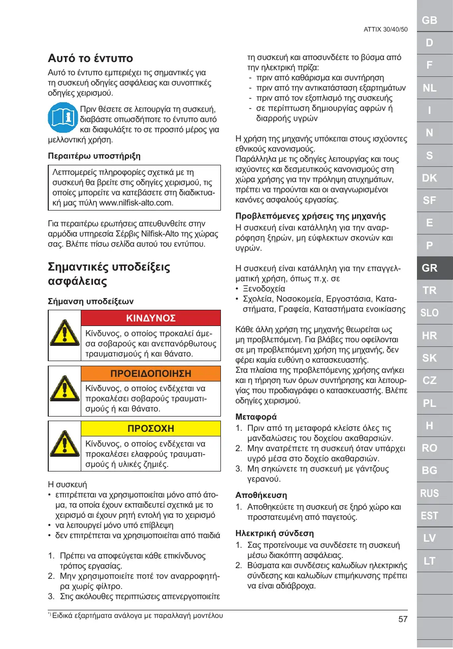 Retrouvez gratuitement la notice de l'appareil ATTIX 30 BATT NILFISK au format PDF.