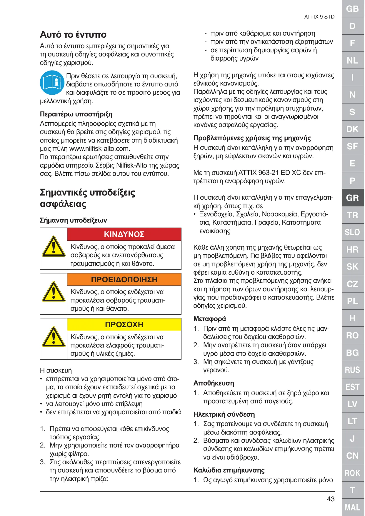 ATTIX 961-01 - Βιομηχανική ηλεκτρική σκούπα NILFISK - Notice d'utilisation et mode d'emploi gratuit
