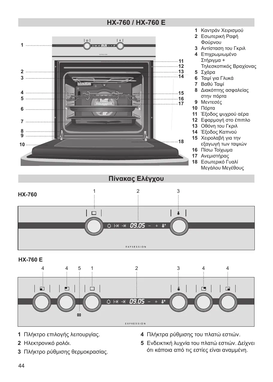 1 Καντράν Χειρισμού 2 Εσωτερική Ραφή 3 Αντίσταση του Γκριλ 4 Επιχρωμιωμένο Τηλεσκοπικός Βραχίονας 5 Σχάρα 6 Ταψί για Γλυκά 7 Βαθύ Ταψί 8 Διακόπτης ασφαλείας 9 Μεντεσές 10 Πόρτα 11 Έξοδος ψυχρού αέρα 12 Εφαρμογή στο έπιπλο 13 Οθόνη του Γκριλ 14 Έξοδος Καπνού 15 Χειρολαβή για την εξαγωγή των ταψιών 16 Πίσω Τοίχωμα 17 Ανεμιστήρας 18 Εσωτερικό Γυαλί Μεγάλου Μεγέθους Πίνακας Ελέγχου