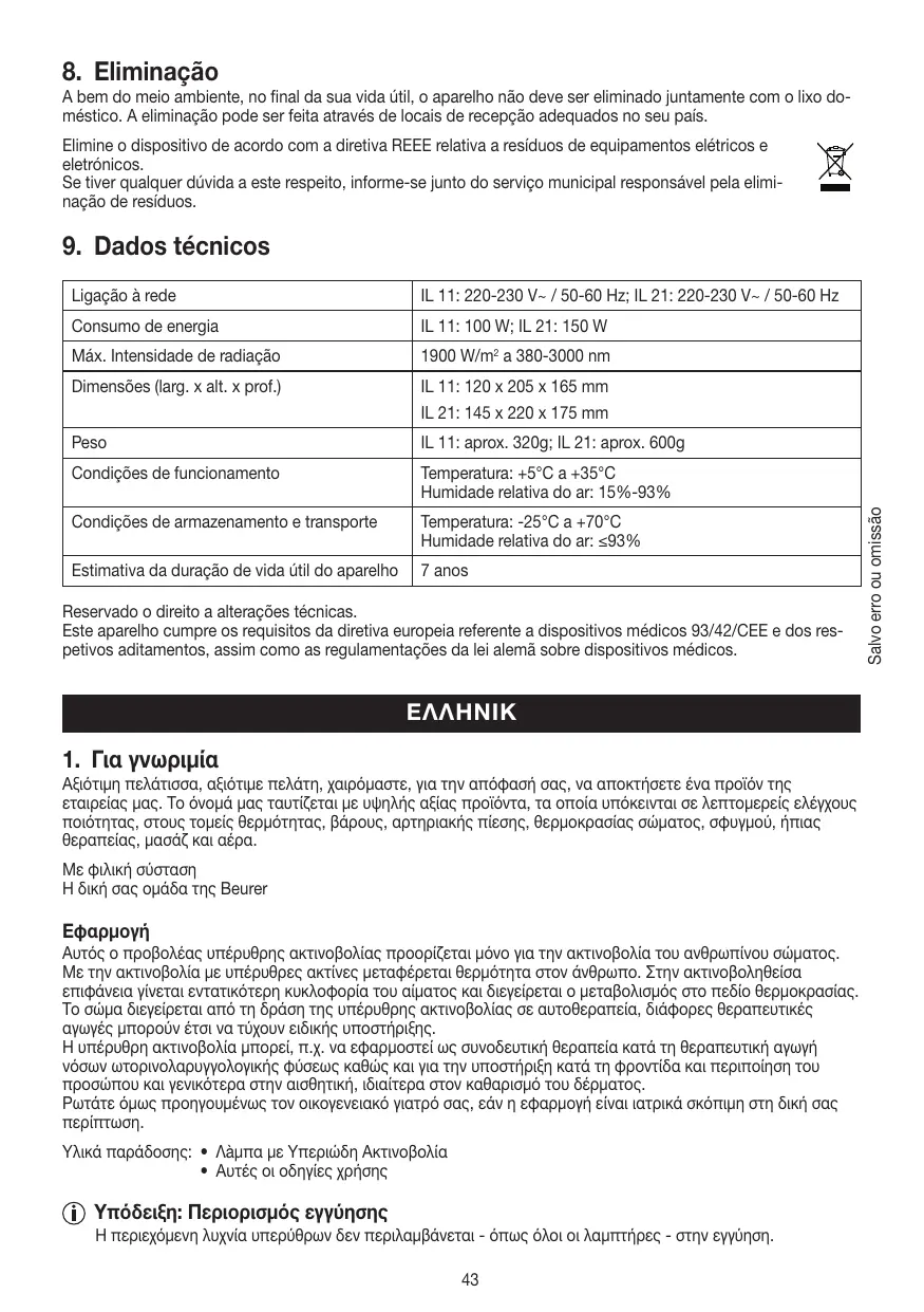 Η περιεχόμενη λυχνία υπερύθρων δεν περιλαμβάνεται - όπως όλοι οι λαμπτήρες - στην εγγύηση. 43