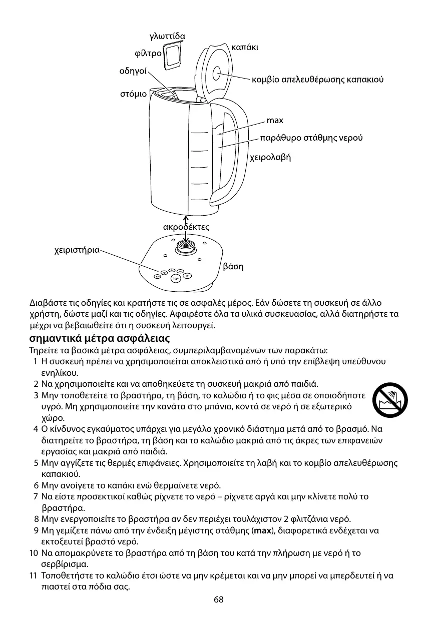 25 N'inclinez pas la bouilloire vers l'arrière, de l'eau pourrait couler sur la zone de contrôle. Si ceci se produit, laissez la bouilloire sécher avant utilisation - posez-la dans un endroit chaud pendant 12 heures.