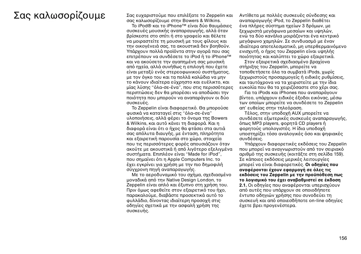 Téléchargez la notice de votre Ασύρματο ηχείο au format PDF gratuitement ! Retrouvez votre notice B&W ZEPPELIN - B&W et reprennez votre appareil électronique en main. Sur cette page sont publiés tous les documents nécessaires à l'utilisation de votre appareil B&W ZEPPELIN de la marque B&W.