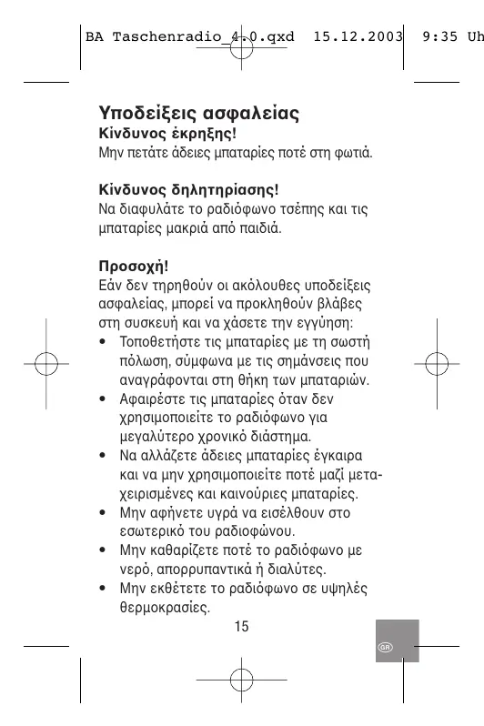 Κατεβάστε τις οδηγίες για το Φορητό ραδιόφωνο σε μορφή PDF δωρεάν! Βρείτε το εγχειρίδιό σας KH 2227 - EBENCH και πάρτε ξανά την ηλεκτρονική σας συσκευή στα χέρια σας. Σε αυτή τη σελίδα δημοσιεύονται όλα τα έγγραφα που απαιτούνται για τη χρήση της συσκευής σας. KH 2227 της μάρκας EBENCH.