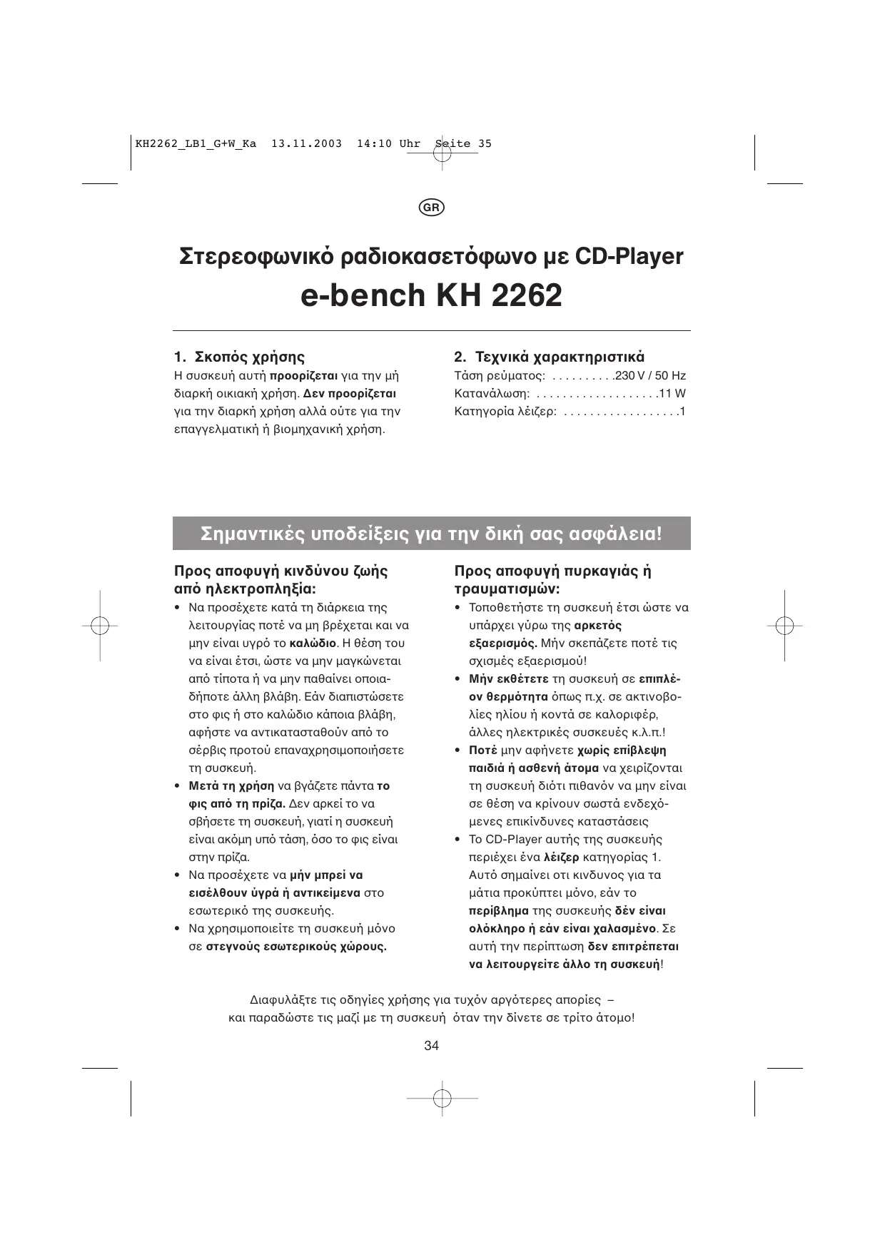 ΕΓΧΕΙΡΊΔΙΟ ΧΡΉΣΗΣ KH 2262 CD RADIO CASSETTE RECORDER EBENCH