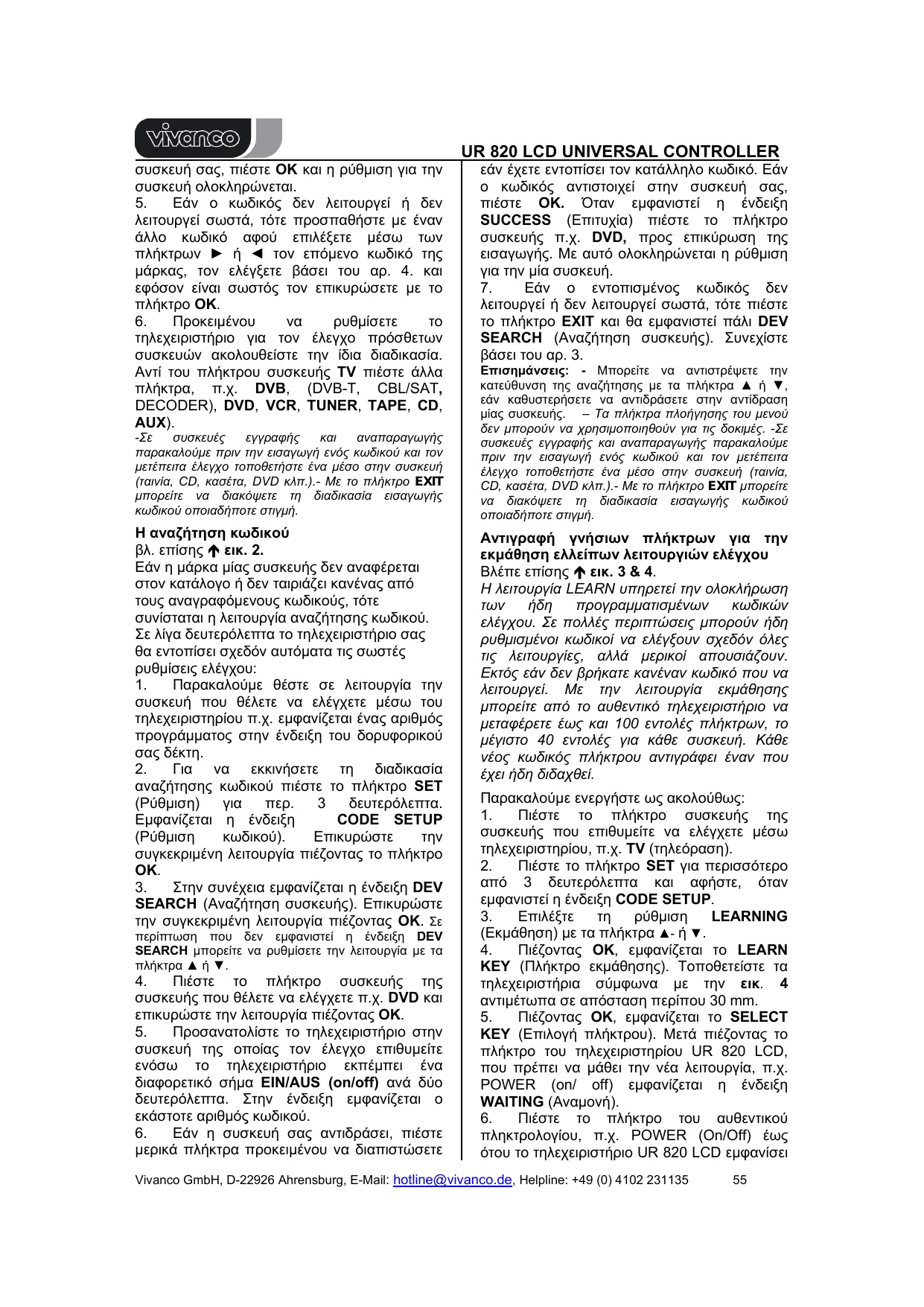Retrouvez gratuitement la notice de l'appareil UNIVERSAL CONTROLLER UR 820 LCD VIVANCO au format PDF.