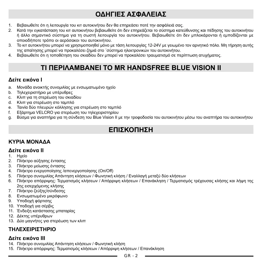 ΕΓΧΕΙΡΊΔΙΟ ΧΡΉΣΗΣ BLUE VISION 2 MR HANDSFREE