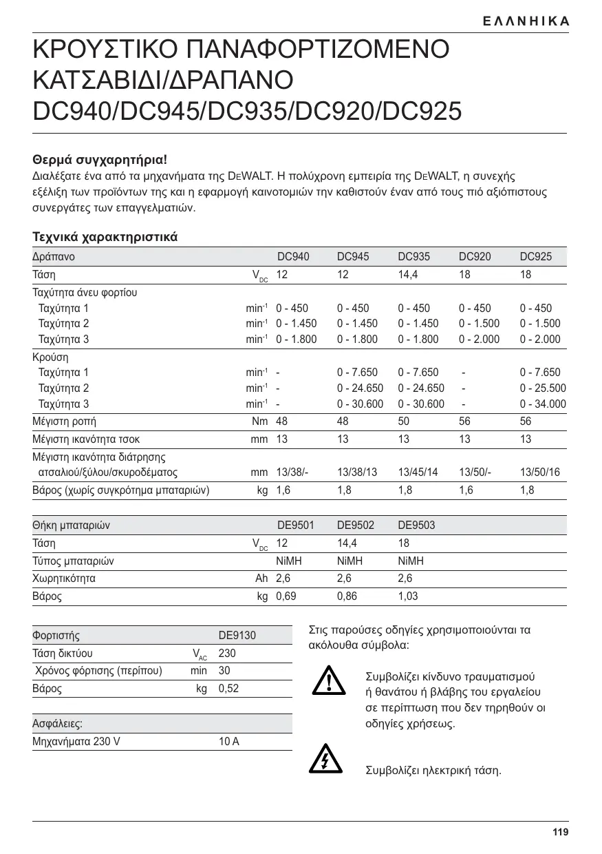 Βρείτε δωρεάν το εγχειρίδιο της συσκευής DC925KB DEWALT σε μορφή PDF.