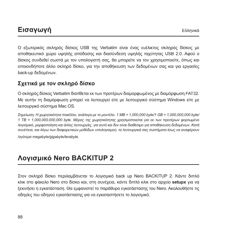 EXTERNAL HARD DRIVE USB 2.0 - Εξωτερικός σκληρός δίσκος VERBATIM - Notice d'utilisation et mode d'emploi gratuit