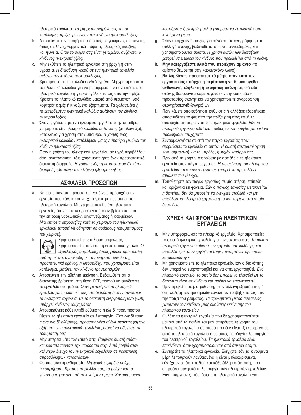 CONSIGNES DE SECURITE SPECIFIQUES POUR LE POLISSAGE a. Evitez qu’une partie mal fixée du disque de polissage ou que des cordes de fixation ne tournent librement. Rangez ou raccourcissez les cordes de fixation. Des cordes de fixation lâches ou en rotation peuvent happer vos doigts ou se coincer sur la pièce à travailler.